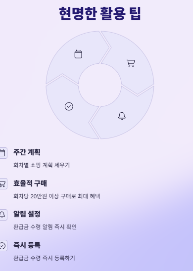 5월부터 9월까지 총 20회차 동안 진행되므로, 매주 계획적으로 쇼핑하면 총 40만원의 환급 혜택을 누릴 수 있습니다. 가족이나 친구들과 함께 이용하면 더 큰 혜택을 누릴 수 있어요.